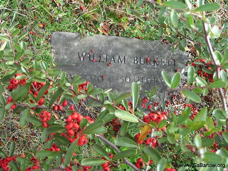 PVT, Co C, 50 Regt GA Inf CSA, marker covered by large bush |