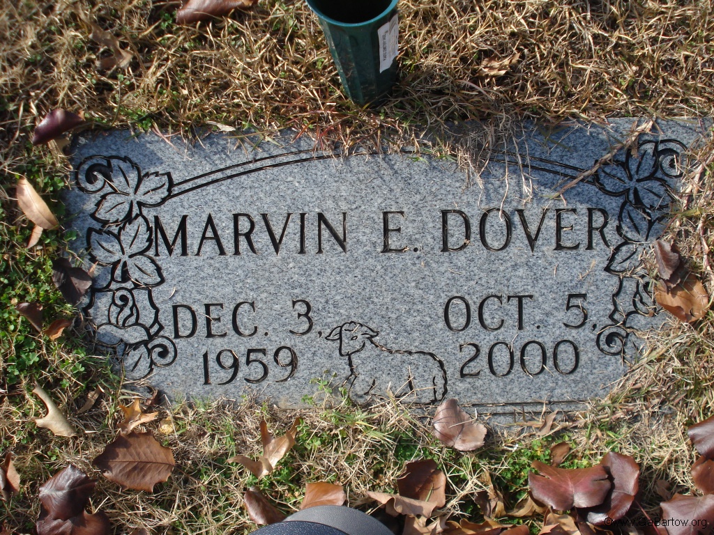 Marker is homemade with name/dates hand printed; marker is cracked & hidden by overgrown grass add'l image |