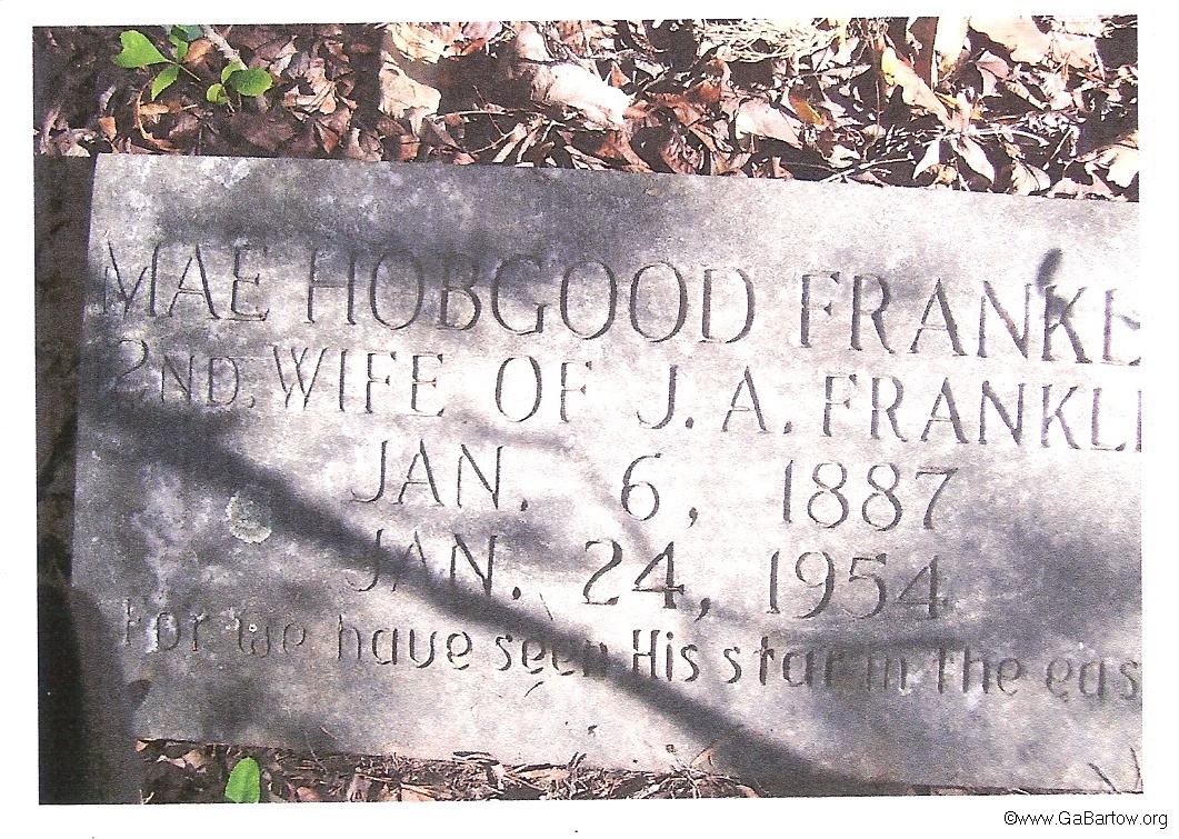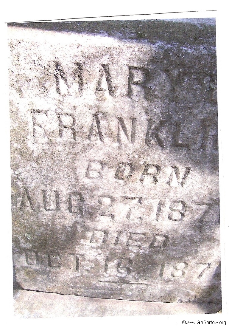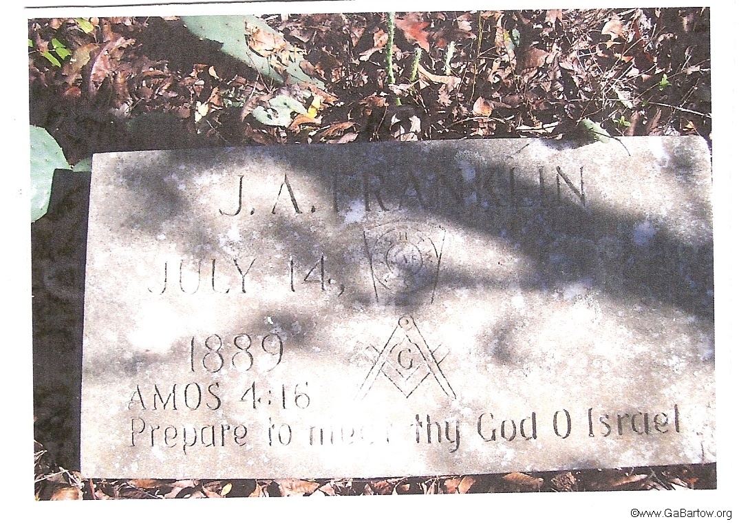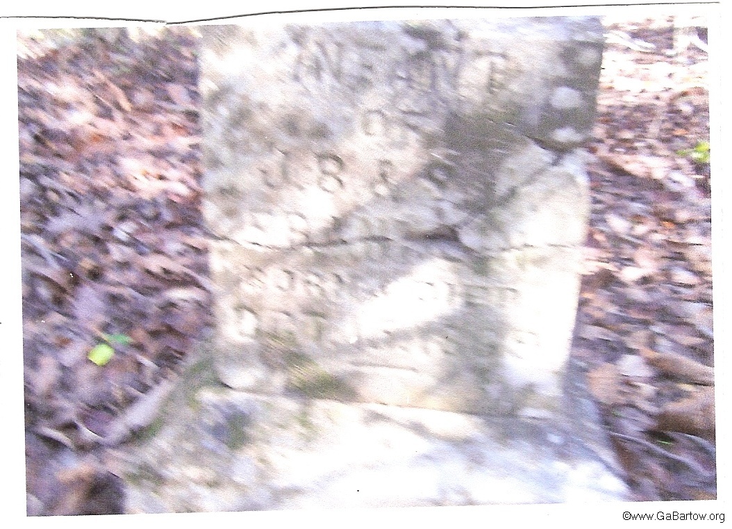 | Directions: Adairsville; Take I-75 North from Cartersville and turn Right onto Hwy 140 at Adairsville. Go approx. 3.5 miles and turn Left onto County Line Loop. Travel about 1/2 mile and turn Left onto a dirt road before a white house on the left. Follow the dirt road approx. 1/2 mile to the top of the hill. The cemetery is at the top of the hill and is not visible from County Line Loop. | ||||||||||||||||||||||||||||||||||||||||||||||||