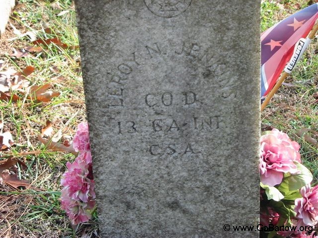 | Jenkins, Leroy | no dates | Co D 13 Ga Inf CSA | |