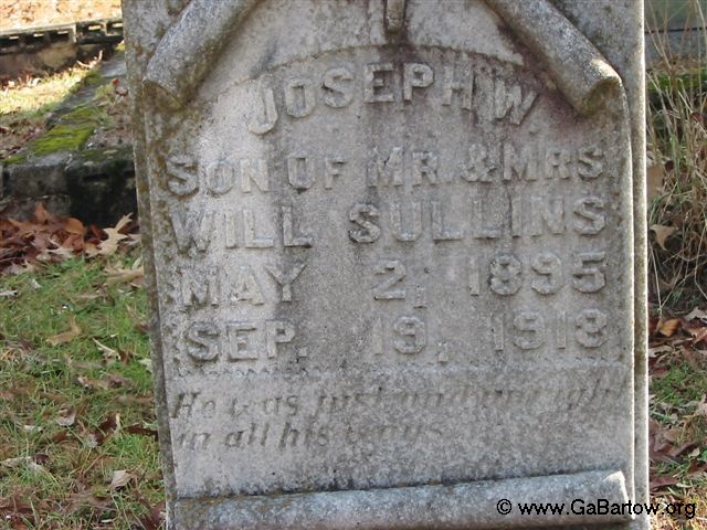 | Sullins, Joseph W. | May 2, 1895 | Sep 19, 1918 | s/o M/M Will Sullins |
