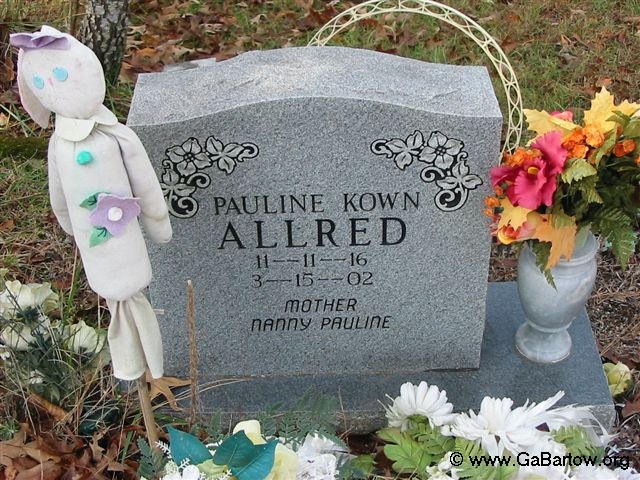| Allred, Pauline Kown | Nov 11, 1916 | Mar 15, 2002 | |