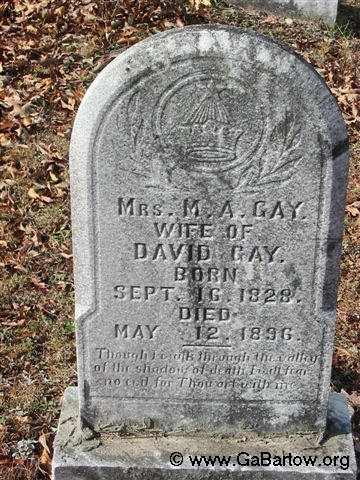 | Gay, M.A. (Mrs.) | Sep 16, 1828 | May 12, 1896 | w/o David Gay |