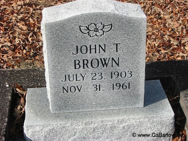 | Brown, John T. | Jul 23, 1903 | Nov 31, 1961 | |