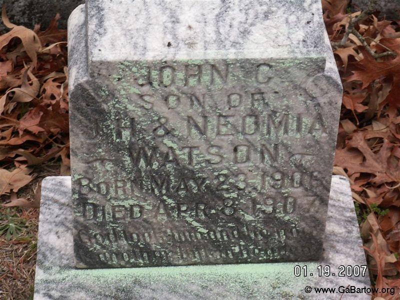 | Watson, John C. | May 23, 1906 | Apr 8, 1907 | s/o J.H. & Neomia Watson |