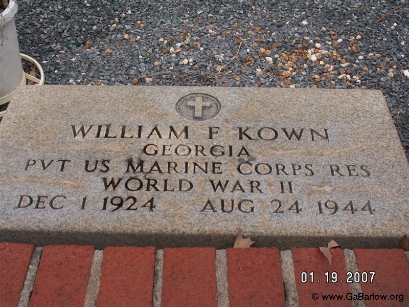 | Kown, William F. | Dec 1, 1924 | Aug 24, 1944 | Pvt US Marine Corps Res WWII |