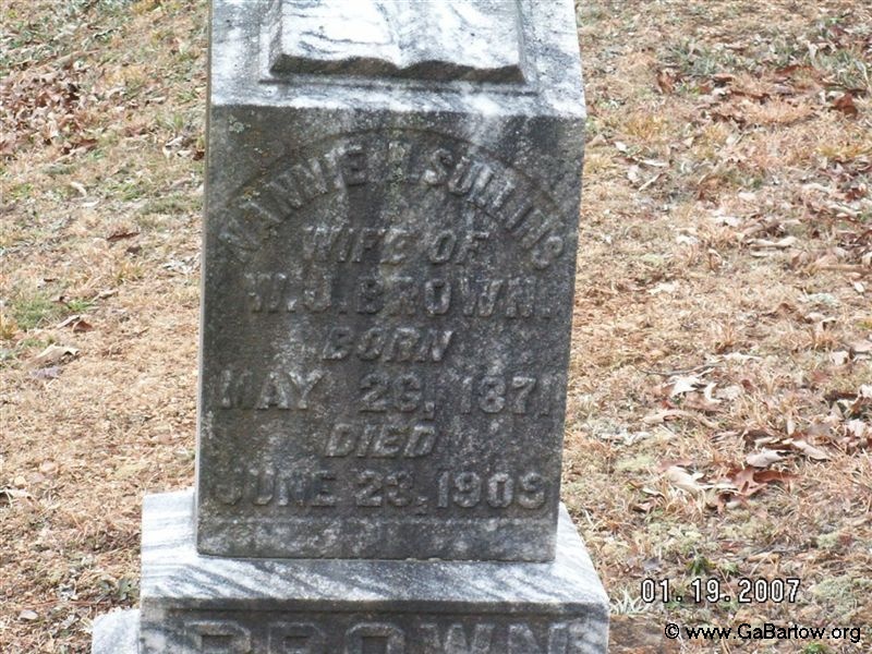 | Brown, Nannie H. Sullins | May 26, 1871 | Jun 23, 1909 | w/o W.J. Brown add'l image |