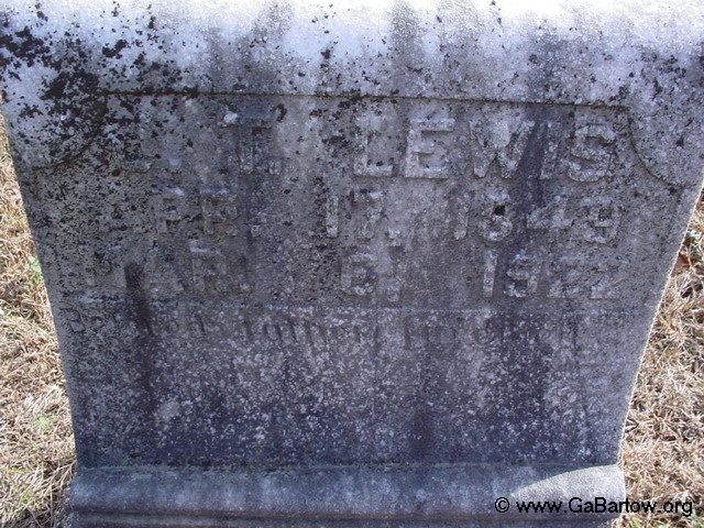 | Lewis, J.T. | Apr 17, 1849 | Mar 6, 1922 | |