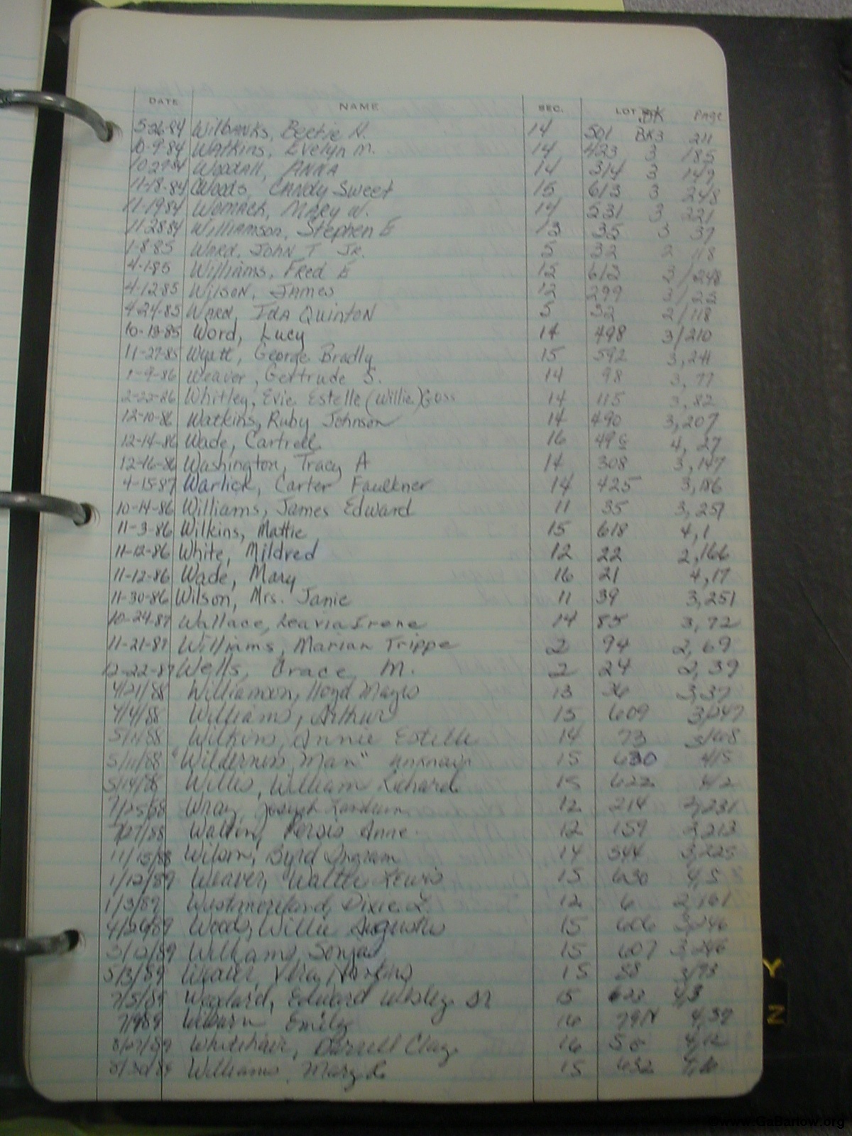 | Pg | Date | Name | Age | Comments | Section | Lot | Book / Page |