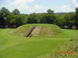 The invitation to Cartersville, Georgia, came as I prepared to visit Mr. and Mrs. Joe Bishop in Tucker, Georgia. Many will remember Mrs. Bishop as the former Joanne Lott, the daugter of the late Mr. and Mrs. Joe Lott of this city. She has served as my main source on a biography of the late Pulitzer Prize winner Caroline Pafford Miller of Waycross, Baxley and Waynesville, North Carolina. That manuscript is now being reviewed by Joanne and other members of the Pafford family. The call from the Jameson Inn here credited to a former classmate was something of a surprise.I had not seen him since our days at Georgia Teachers College in the early 1950s. He was the one at GTC with the convertible, an item which marked him for immediate popularity, especially on week ends. But Don had something else going for him. His personality drew people to him. Smiling, always there to help, he could easily be described as the "best friend." And he, together with Chris Trowell, who has retired from his South Georgia College teaching position, could be classed as my two best friends. Here Don was, with his wife Jean, and driving a new convertible as if 50 years meant nothing, and we took up where we had left off in 1953. The years melted away, and I took him up quickly on the invitation to be their guest in Cartersville. "Bob, you gotta come up here. I want to show you the Etowah Mounds," he had said, knowing how much I enjoyed Georgia history. That was Temptation #1. Temptation #2 centered around Red Top Mountain, Lake Allatoona and its dam; Temptation #3 was the in-depth visit to the Corra Harris farm in Bartow County. Mrs. Harris is the author of "Circuit Rider's Wife," from which the 1951 film "I'd Climb the Highest Mountain" was based. Seeing the world's first Coca-Cola Wall Sign, painted in 1894 by a Coca-Cola syrup salesman, on the side of Young Brothers Pharmacy in Cartersville was an entirely new experience. This display marked an epoch in advertising marketing and the coming of billboards. Though Jean and Don tell me that on some days one finds the Etowah River clear, the day we visited the Etowah Mounds this bordering river, moving rapidly, appeared soupy thick with the red clay so famous in North Georgia. The swiftness became most noticeable when one heard the many Canadian geese honking in dismay because the currents were carrying them much further than they desired to go. After working hard to scramble back onto the banks, these long-necked birds shooked themselves and ambled into a pasture, disdaining the river which had drawn them here in the first place. Archaeologists inform that the Mississipean Culture probably ended its days in what is now Bartow County. One of the great cities was located near Cartersville at the juncture of the Etowah River and Pumpkinvine Creek. Now named "Etowah Indian Mounds State Park," the 54-acre area consists of seven mounds, borrow pits, plaza and portion of the original village and a museum. These moundbuilders, living here in about 950 AD, had moved east from what is now Mississippi, introducing greatly advanced agricultural techniques, government, religion and commerce in their path. These travelers were not alone, for along the way, they met and worked with the Woodland Indians and the Mound Builders from Ocmulgee. Although for various reasons the other civilizations faded away, the Etowah site grew, as one can tell by the artwork and pottery, which progressed from that lacking detail to pieces with elaborate designs. As growth continued for these villagers, the ruling family saw the need for defense perimeters. But by the time Hernando deSoto marched through in 1540, this culture was in its decline and, finally, abandoned. Creek, Cherokee and white settlers used the term "Hightower," possibly a translation from "Itawa" or "Italwa," which means "city," when referring to this now vanished community. "Etowah" is a corruption of this word, it is believed. Though the original location was deserted, a Cherokee village, naming itself after the Etowah Mounds, established itself here. By the early 1800s, the only traffic seemed to be the caravans transporting saltpeter to Savannah from the nearby beds on the Hightower Trail. Then, in 1838, the land was purchased by Colonel Lewis Tumlin, whose family held this property for 125 years. Purchased by the State of Georgia in 1953, this historic site was declared the "most threatened in the nation." With this label attached to the property, a great preservation effort took place, and those archeologists who are studying this locale now agree that not only one but also several moundbuilding cultures could have flourished here. Twelve-Thousand-Acre Lake Allatoona, with miles of hiking trails, picnic areas and four marinas, spreads itself haphazardly all over the terrain. Though for security reasons guests cannot walk on the dam today, the view from the bluff above the waterway is quite impressive. Lake Allatoona, actually built by the U.S. Corps of Engineers, surrounds Red Top Mountain State Park on three sides. When the lake was formed shortly after World War II, it blanketed much of the area's history, covering the old Hightower Trail, which was a main artery for Cherokee Indian and early settler travel. It is interesting to note also that Lake Allatoona forms the original bed of the Etowah River, with steep cliffs found under the water; the southern border was once known as the "greenbelt," an area of neutrality established between the Creek and Cherokee nations assuring that a member of either tribe could travel this strip without fear of reprisals from members of other tribes. The U.S. Corps of Engineer Visitor Center at the top of the dam stresses regional history and natural resources with displays and exhibits. As early as 1830, Etowah, an industrial center surrounded by an agricultural community, flourished here until General Sherman burned it during his Atlanta Campaign; now, Etowah is resting beneath the waters of