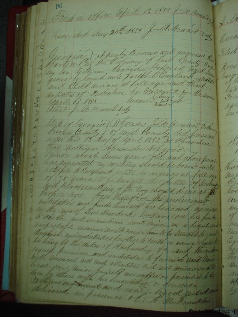 Father consents; apprentice in the trade or craft of carriage blacksmithing |