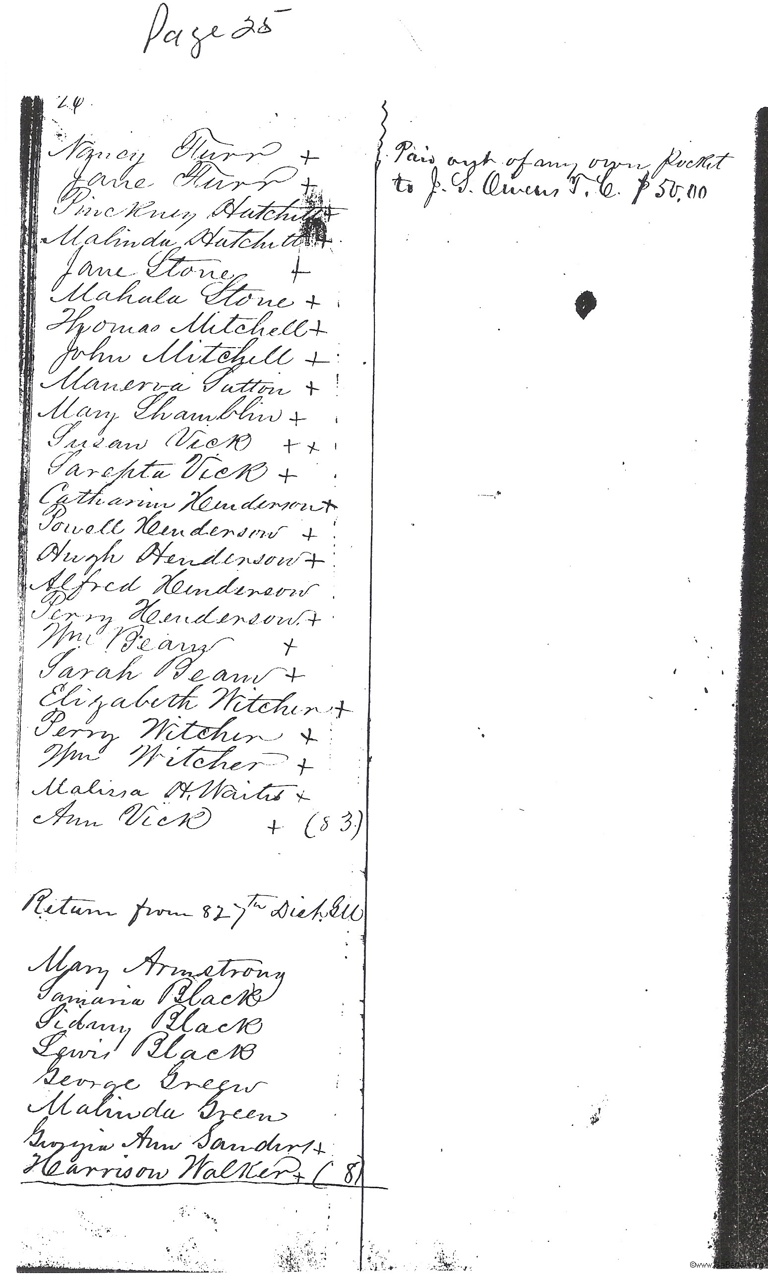 | Return from 856 Dist. GM | 25 | 1854 | Mitchell, Thomas | |