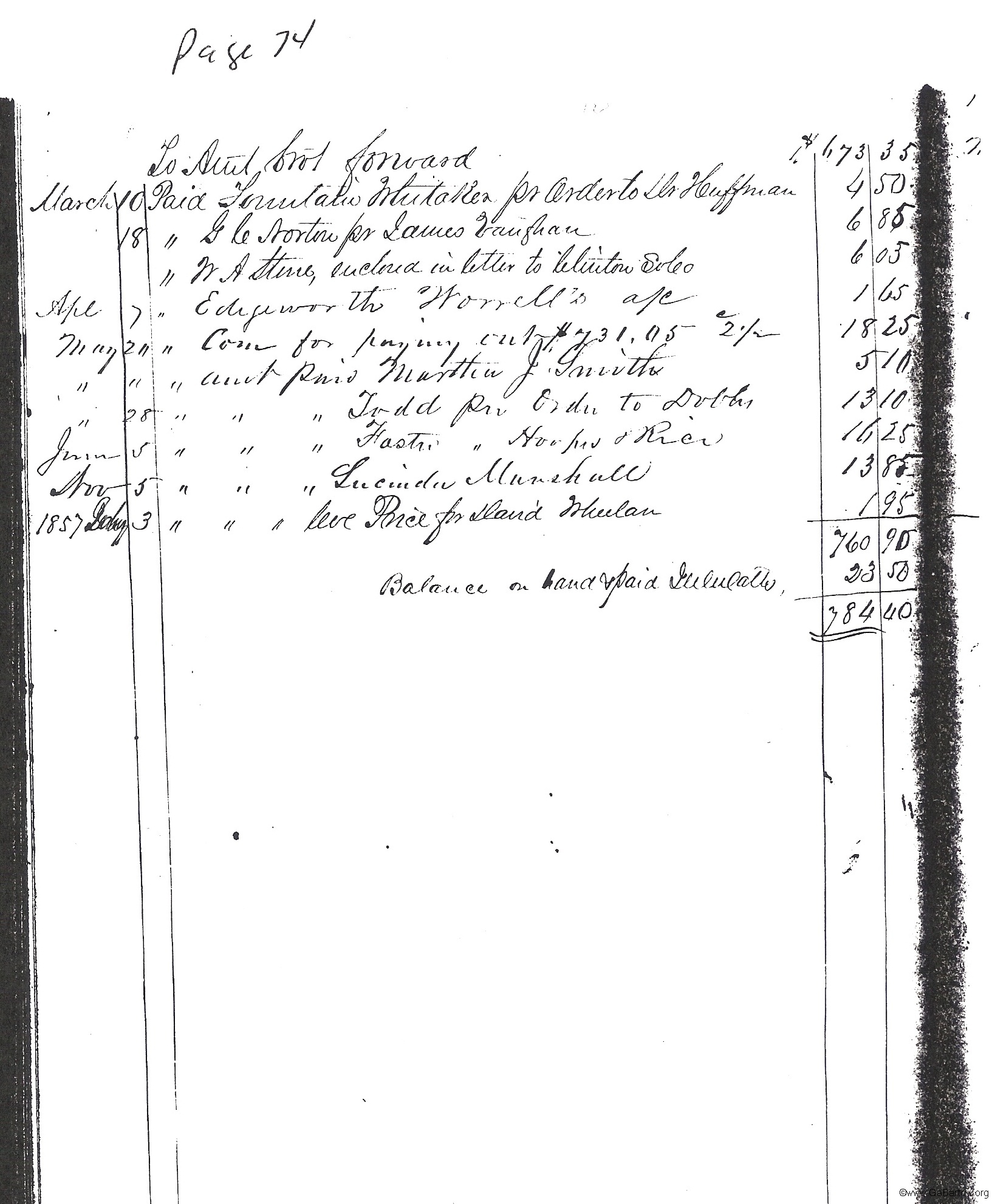 | Paid Out | 73 | 1855 | Moore, J.W. | |