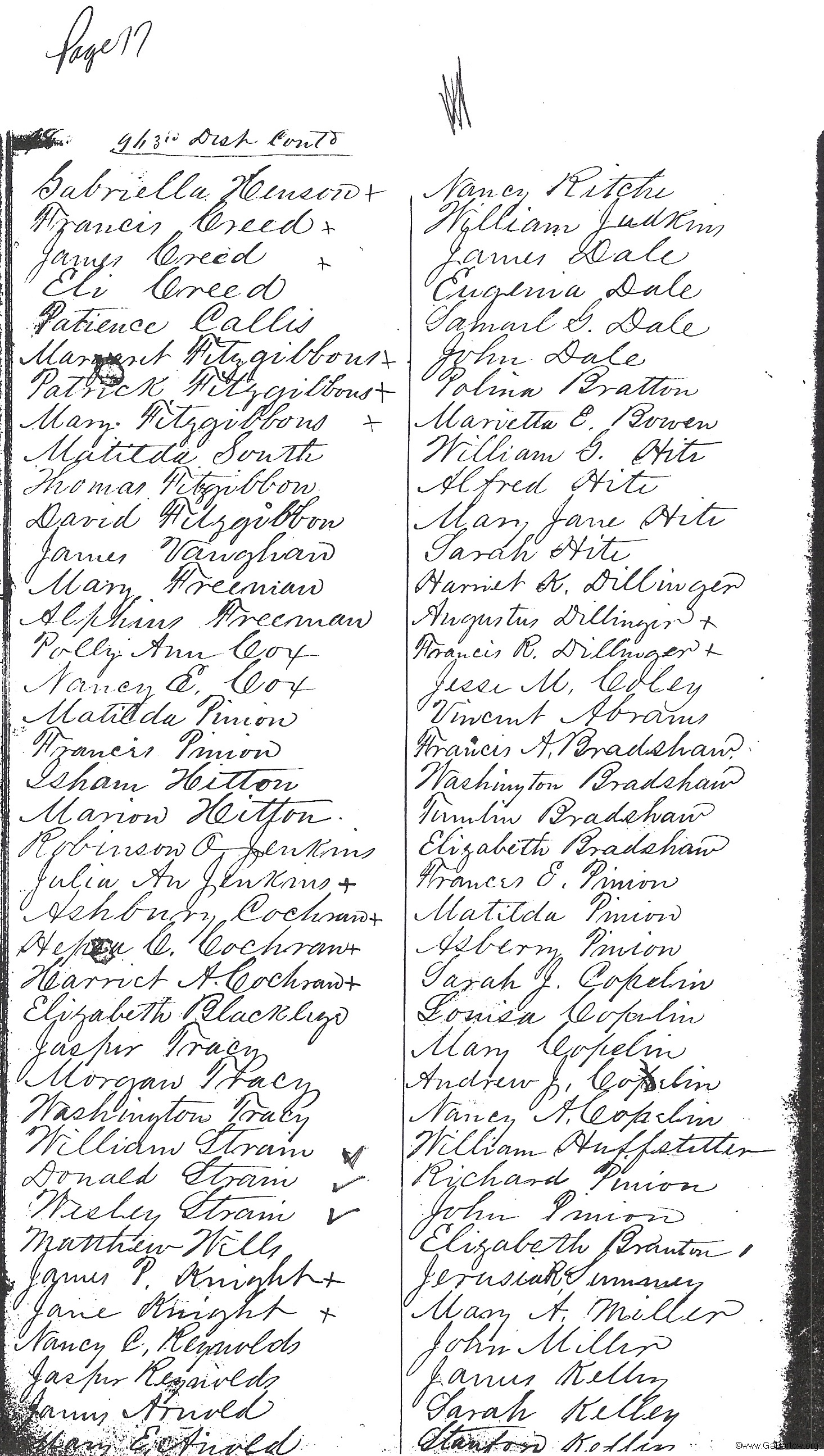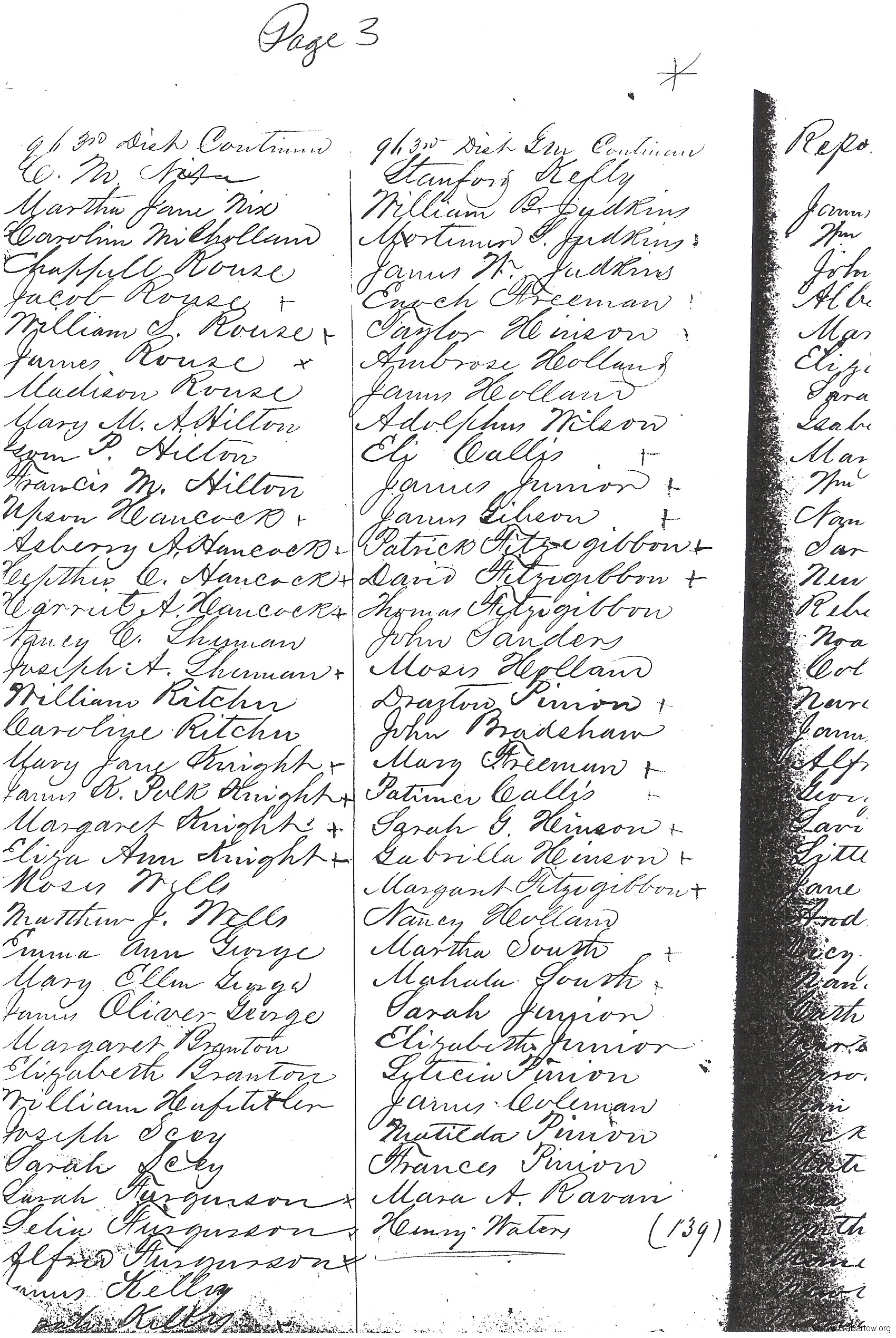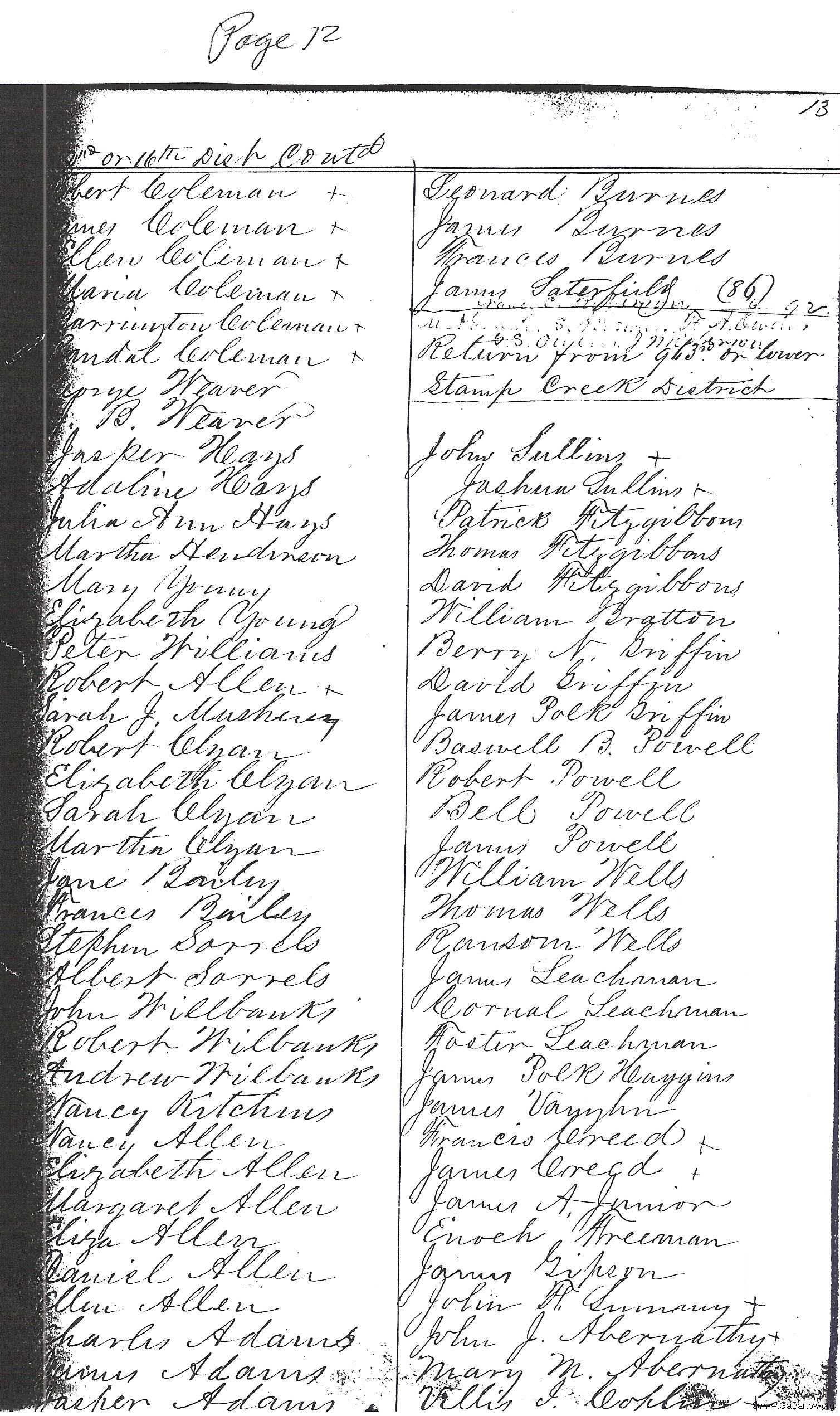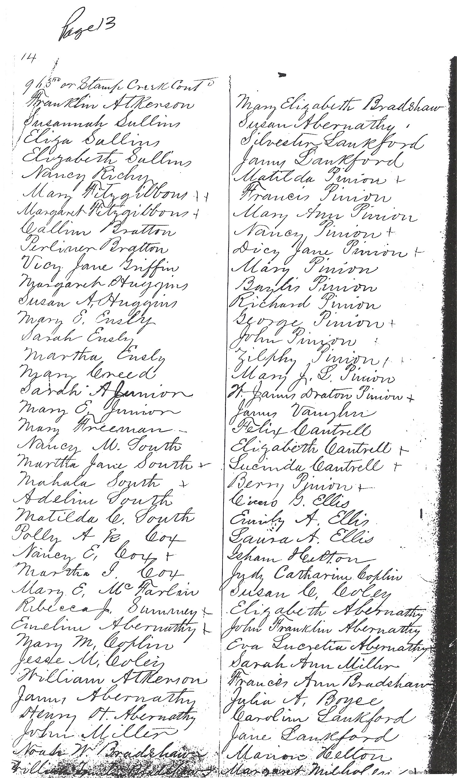 | 963rd Dist. or Stamp Creek Cont. | 13 | 1853 | Pinion, Zilphy | |