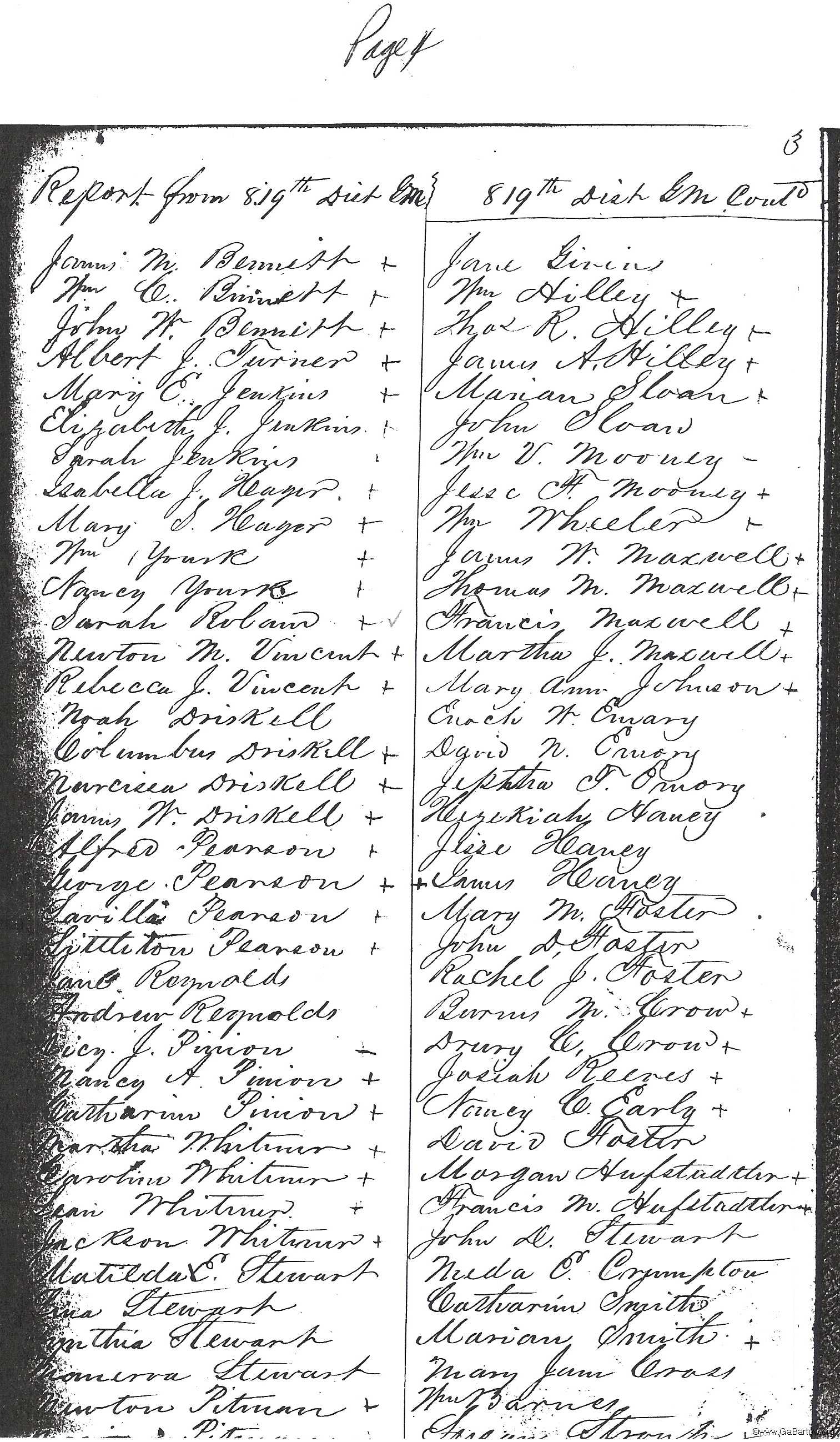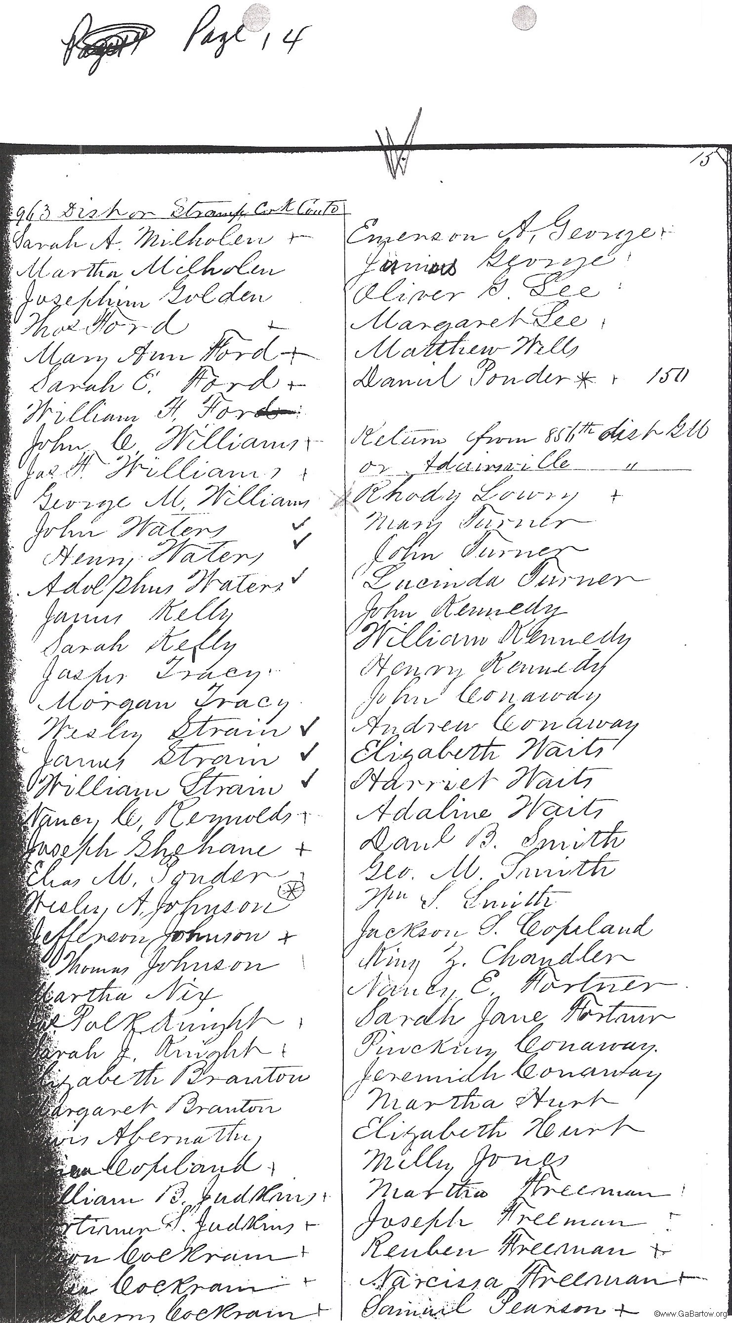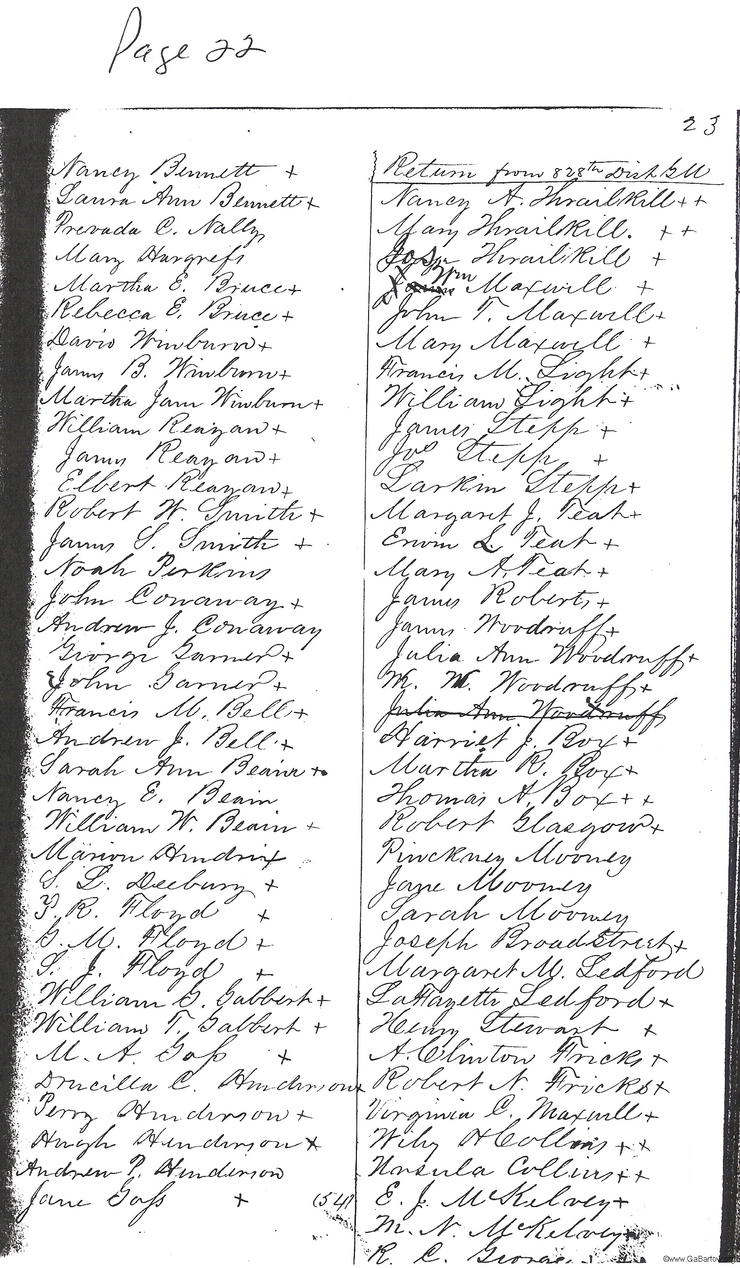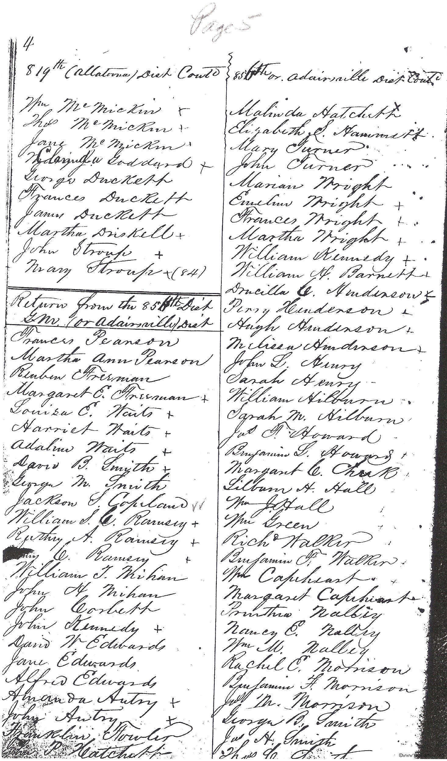 | Return from the 856th Dist GM (or Adairsville) Dist | 5 | 1852 | Pearson, Martha Ann | |