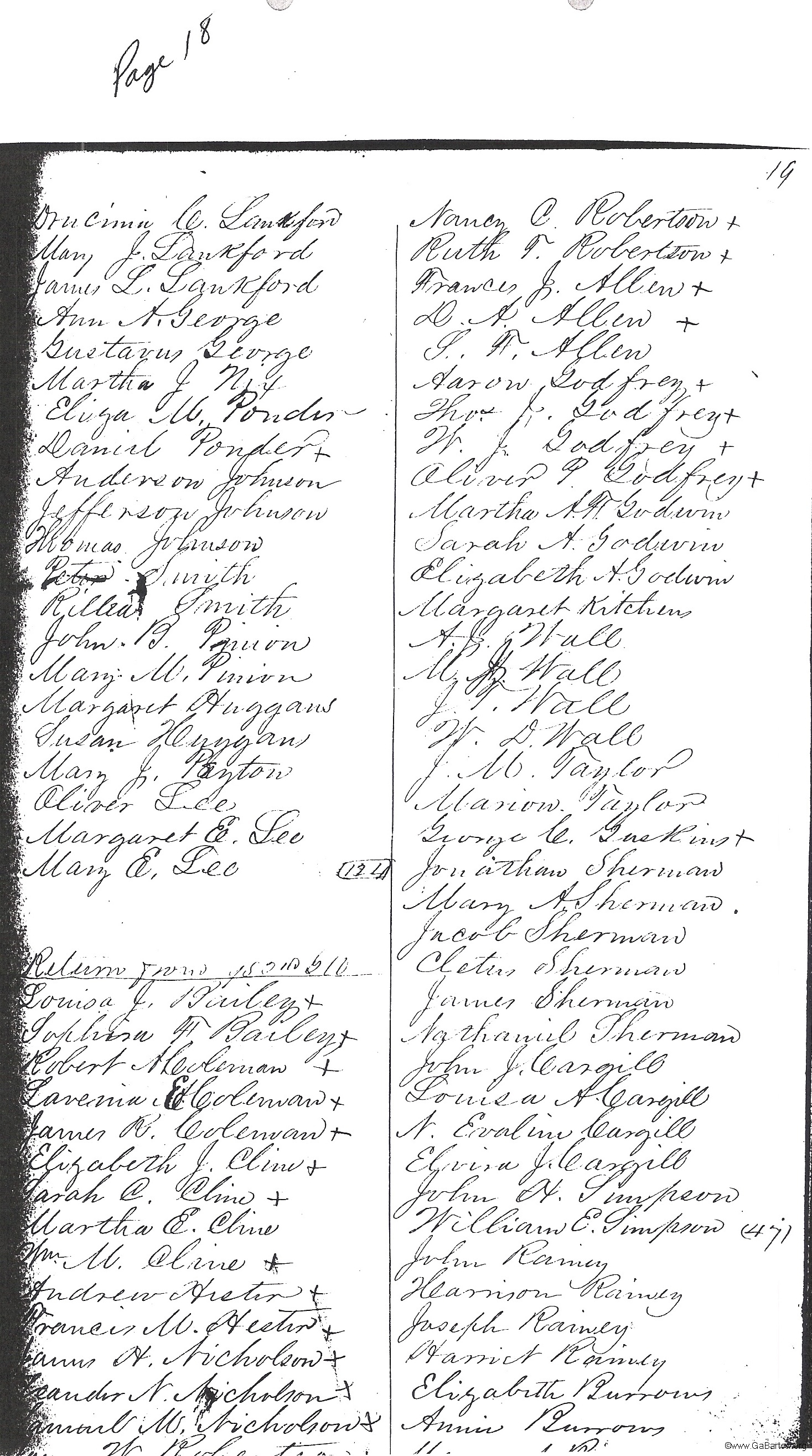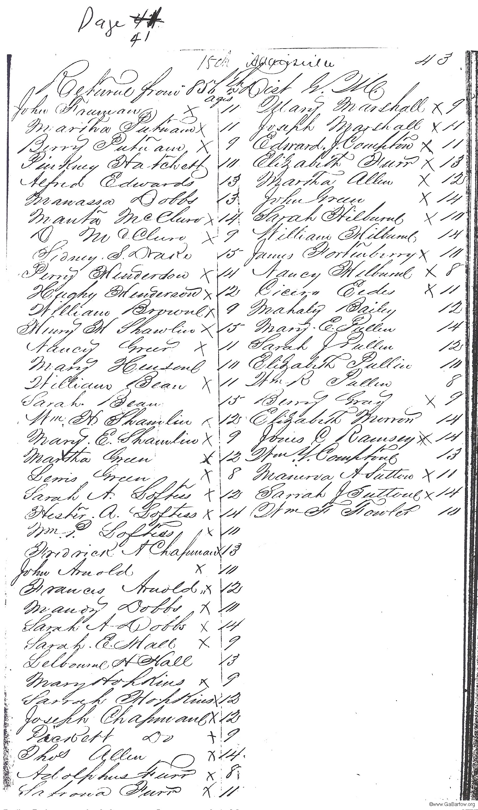 | Return from 856th Dist GM; 15th Adairsville | 41 | 1856 | Putnam, Martha | |