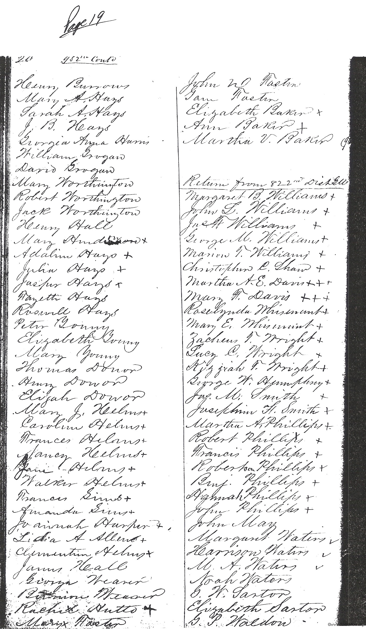 | Return from 822nd Dist. GM | 19 | 1854 | Phillips, Hannah | |