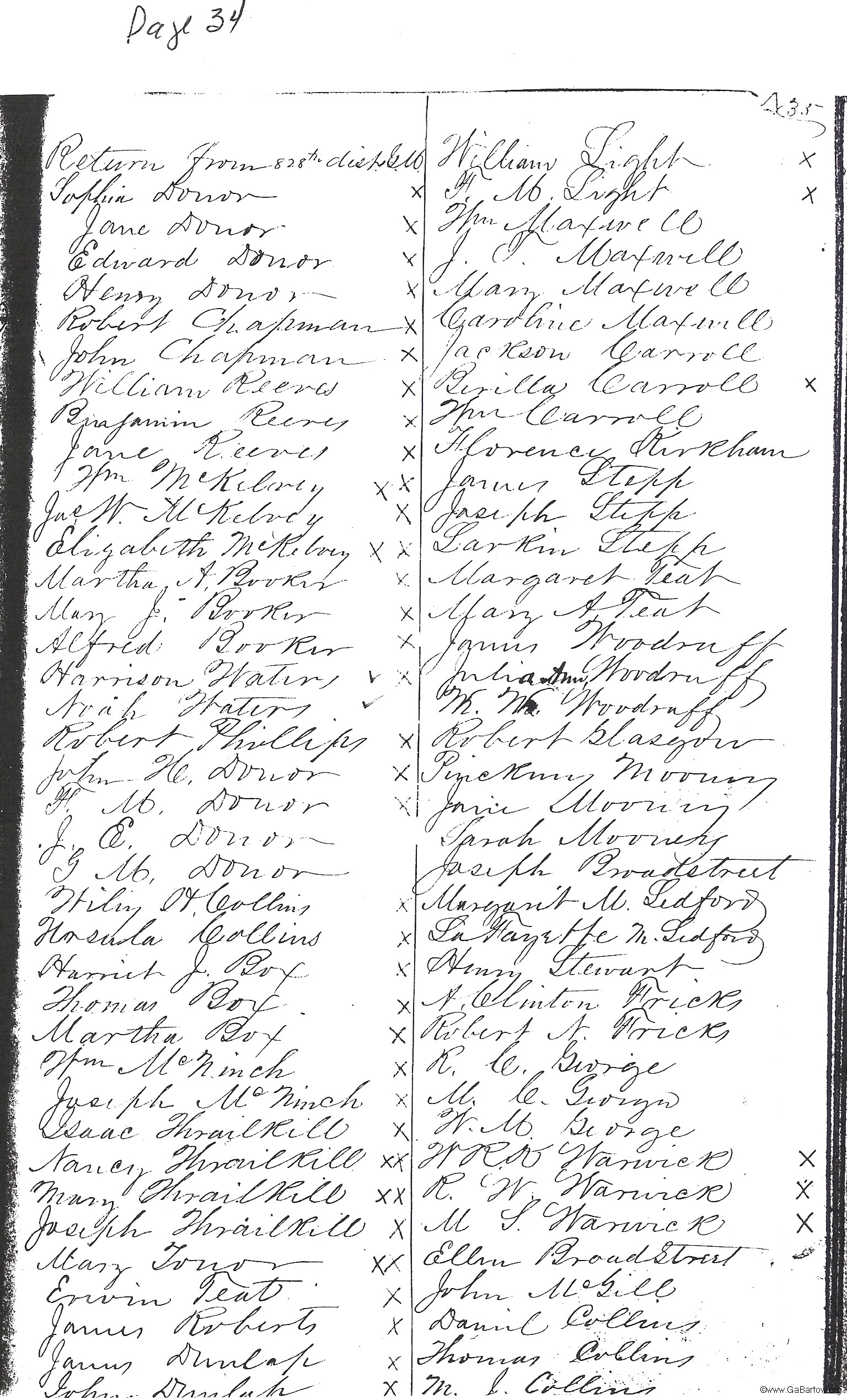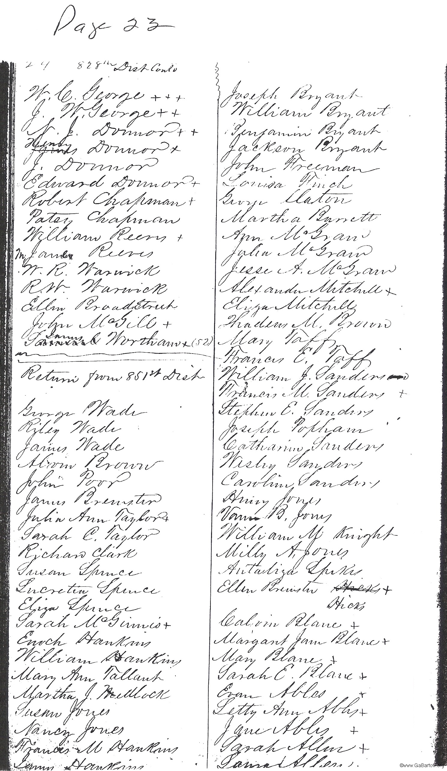 | Return from 856th Dist GM; 15th Adairsville | 41 | 1856 | Pullen, Sarah E. | |