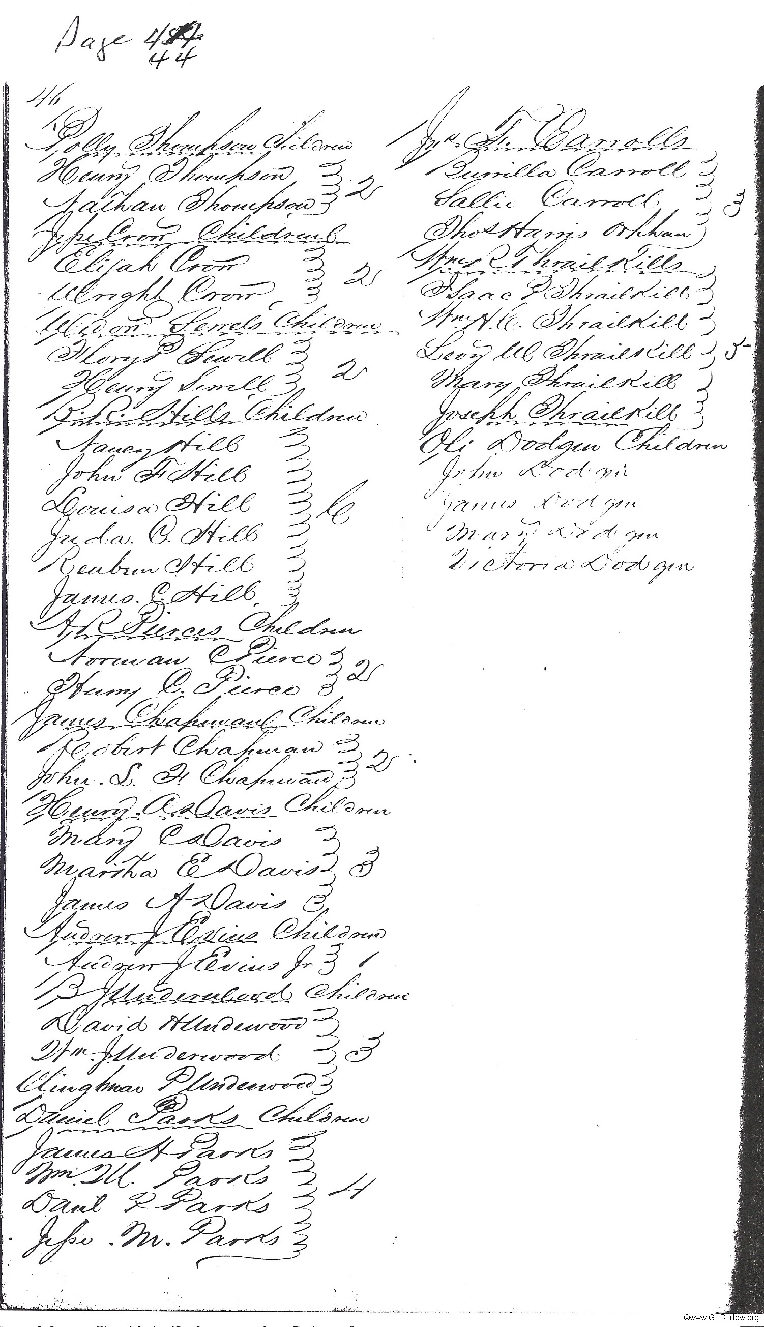 | List of indigent children returned in thje 828th Dist GM | 44 | 1856 | Parks, James H. | |