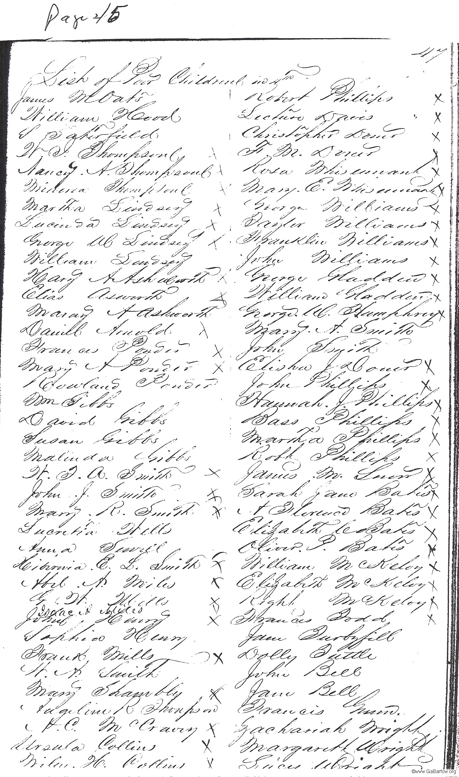 | List of he names of The Poor Children in The 828th District Ga ML Cass County entitled for The benefit of The Poor School fund. | 61 | 1857 | Phillips, Martha | |