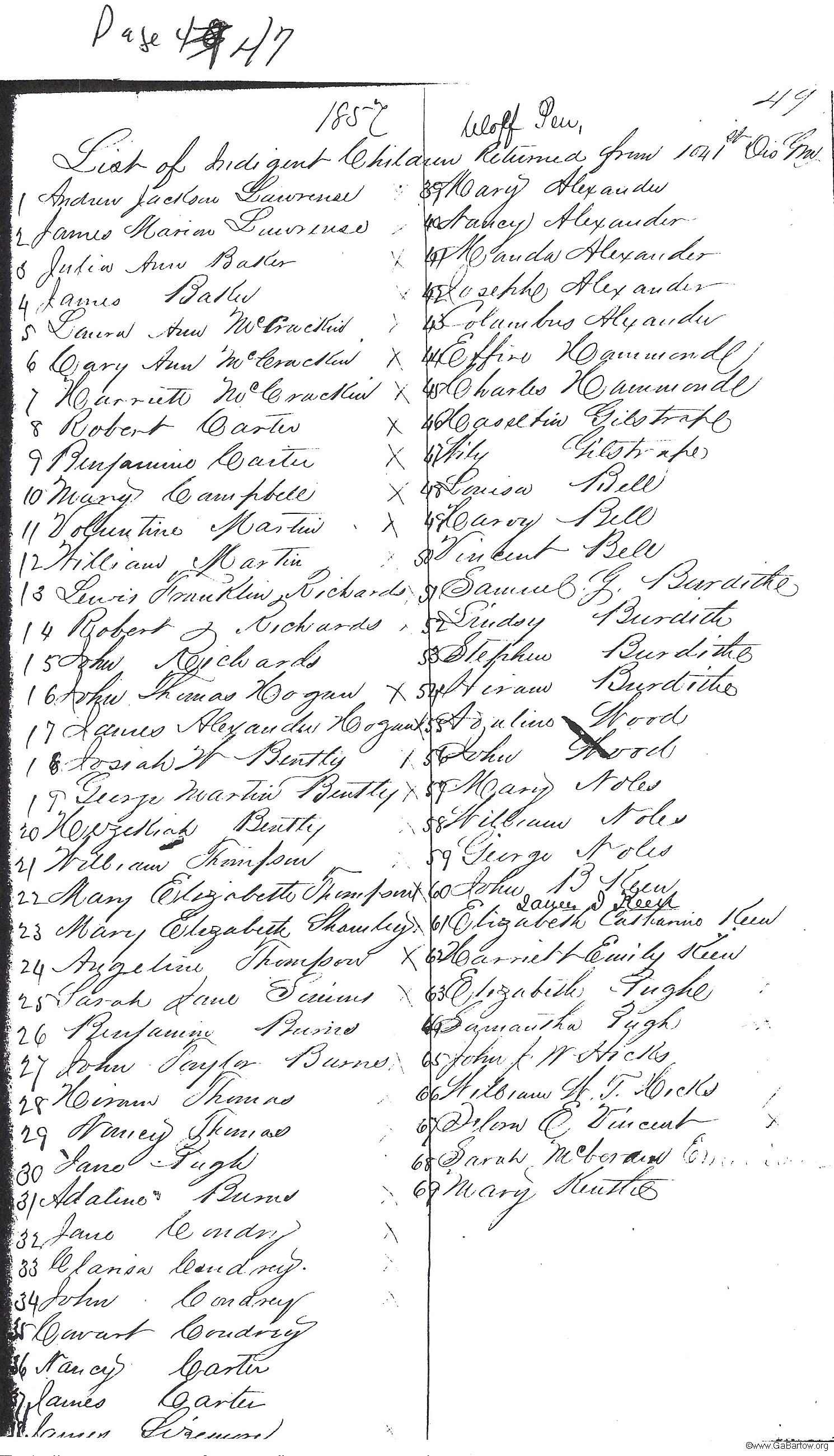 | List of indigent children from 851st Dist. GM (the 17th) | 56 | 1857 | Poor, John | |