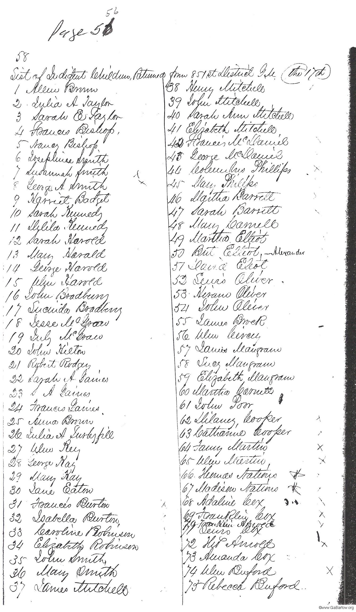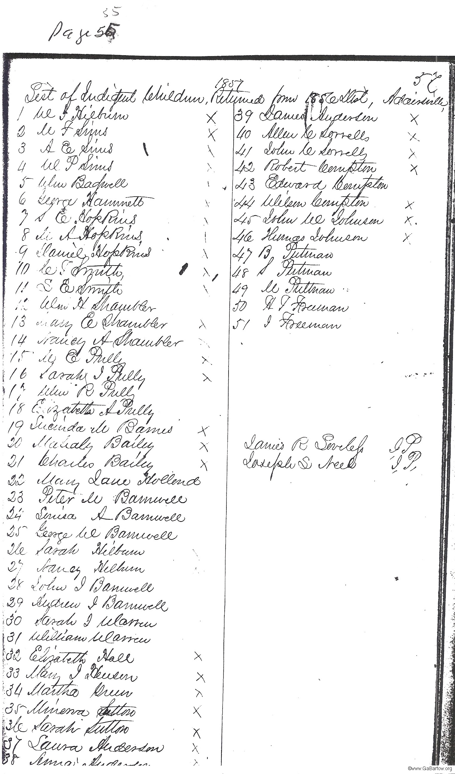 | List of indigent children returned from 856 Dist, Adairsville | 55 | 1857 | Putman, S. | |