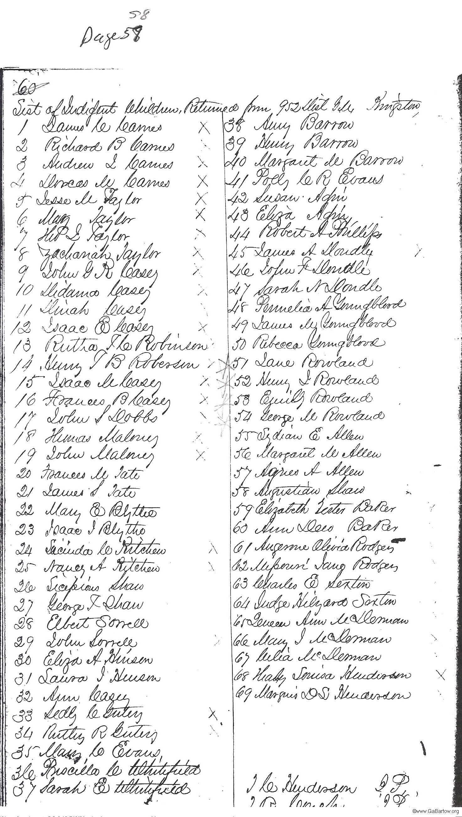 | List of indigent children returned from 819 Dist GM (Alatoona) | 50 | 1857 | Pugh, Marian | |